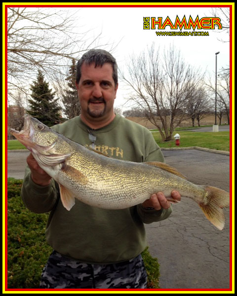 The 4 inch Big Hammer swimbait is the ideal size for trying swimbaits on nearly all bodies of water. It was designed to fit on a heavier jig head than most of the other Big Hammer designs. This makes the 4" Big Hammer swimbait ideal for fishing deep, in strong currents, pitching through holes, crawling down steep ledges, swimming over the top of deep structure, fishing the slide, and trolling. The short, stocky body has less drag than other designs allowing the bait to fall to the bottom quicker when rigged on a heavy jig head. And when trolling it is more forgiving than other designs and will not have the tendency to roll at higher speeds if not rigged perfectly straight. On a lighter jig head such as the 3/8 oz. 4/0 the action is enhanced further due to the protruding edges on each side of the front of the swimbait when rigged.