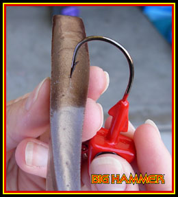 and grab the swimbait where the hook has already gone through. This will help
