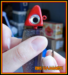 Step 2) Using the point of the hook mark the back of the swimbait where the
